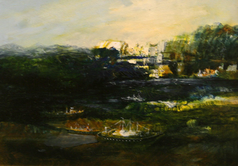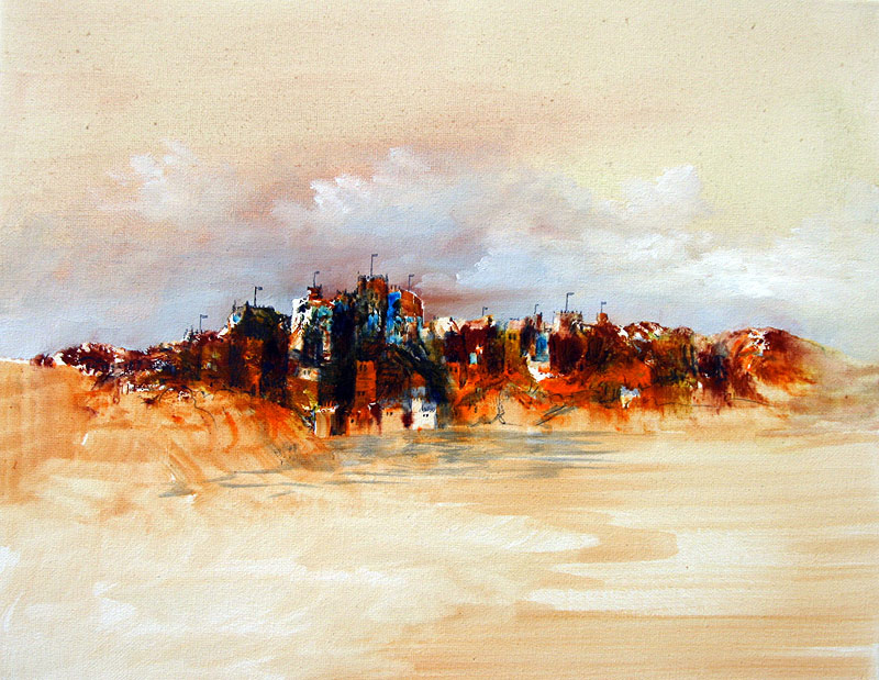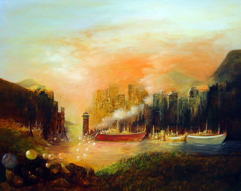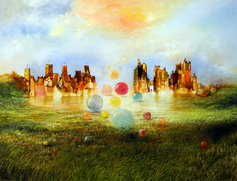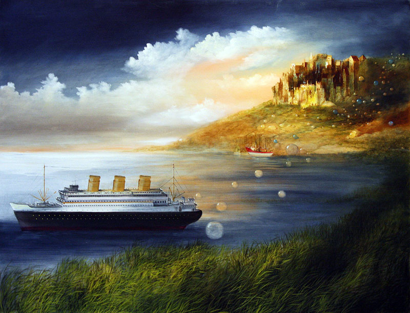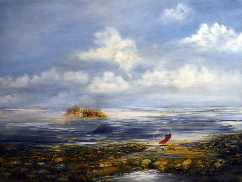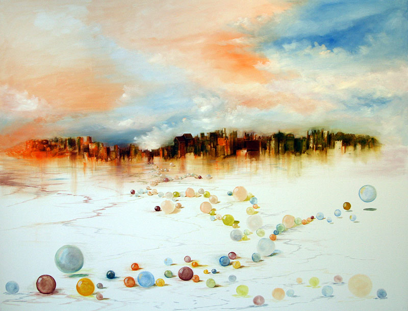 Zum einen bestimmen sein Werk die auf den ersten Blick romantischen Landschaften und Seeblicke, die den Betrachter zu einem zweiten Blick herausfordern und ihm ungewöhnliche und überraschende Perspektiven eröffnen. Schiffe, Segel, überdimensionale Blasen und skurrile Figuren fügen sich in die somit surreale Landschaften ein.
